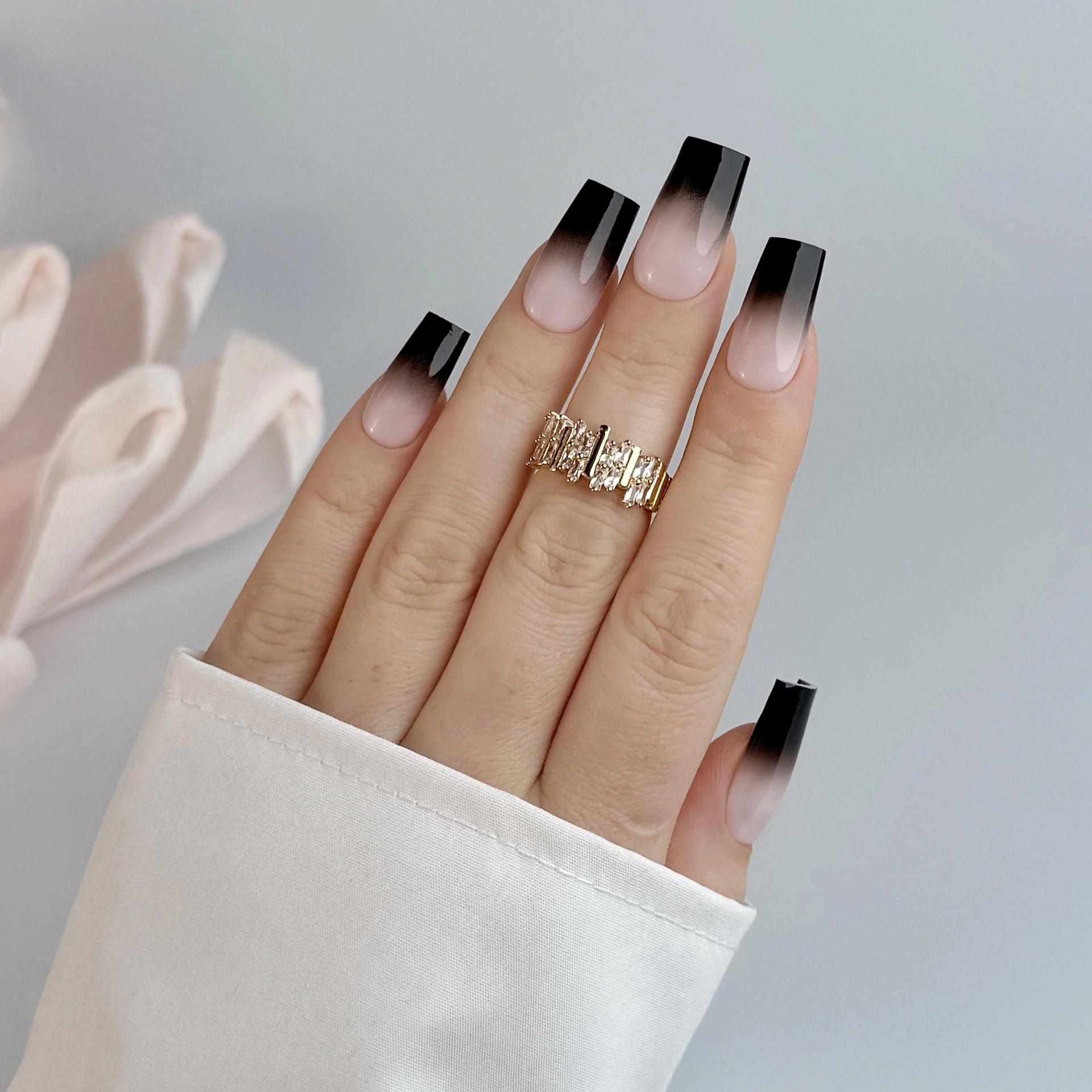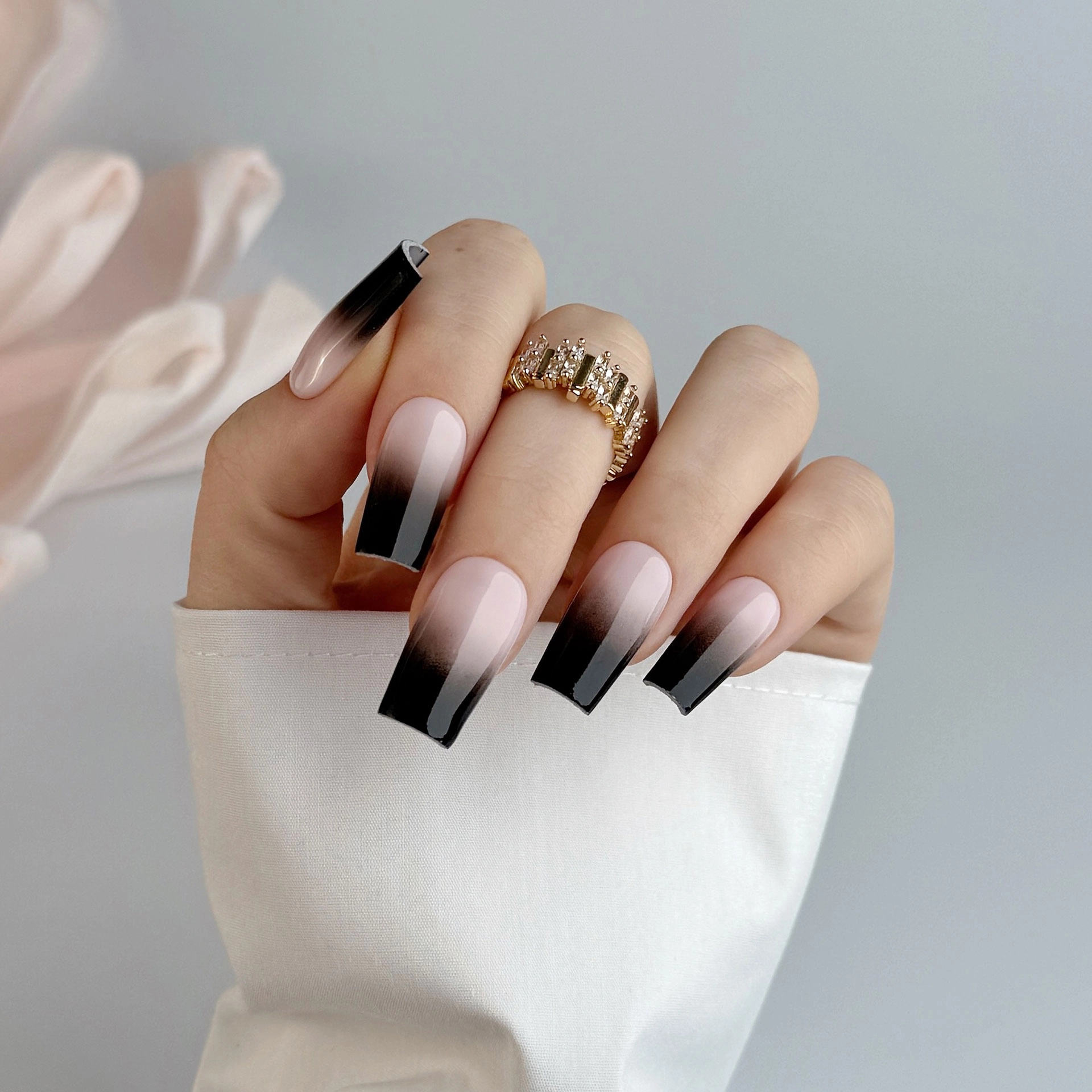 - Sin City ( 7 odcieni) – łączy klasyczny gradient z nowoczesnym, intensywnym akcentem. To delikatne przejście od naturalnego różu do głębokiego, zmysłowego odcienia nadaje paznokciom elegancji i charakteru.