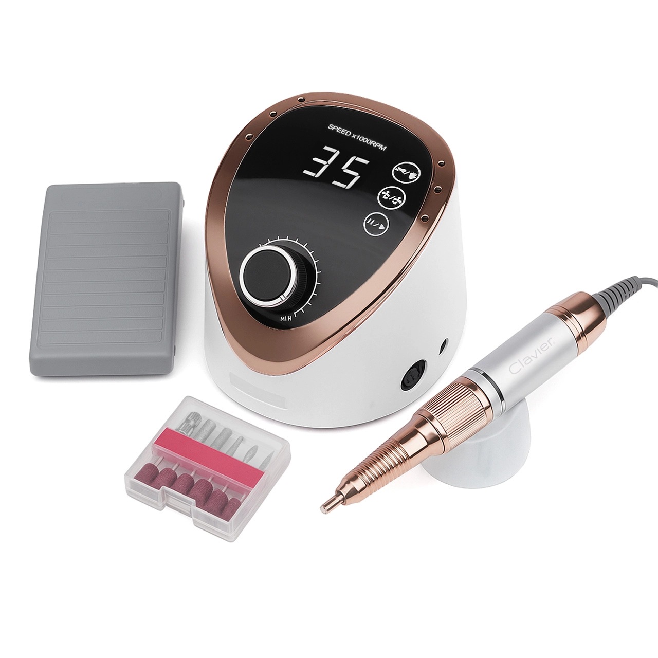 - Prędkość do 35 000 RPM – pełna kontrola nad obrotami, możliwość dostosowania prędkości do rodzaju wykonywanej pracy.