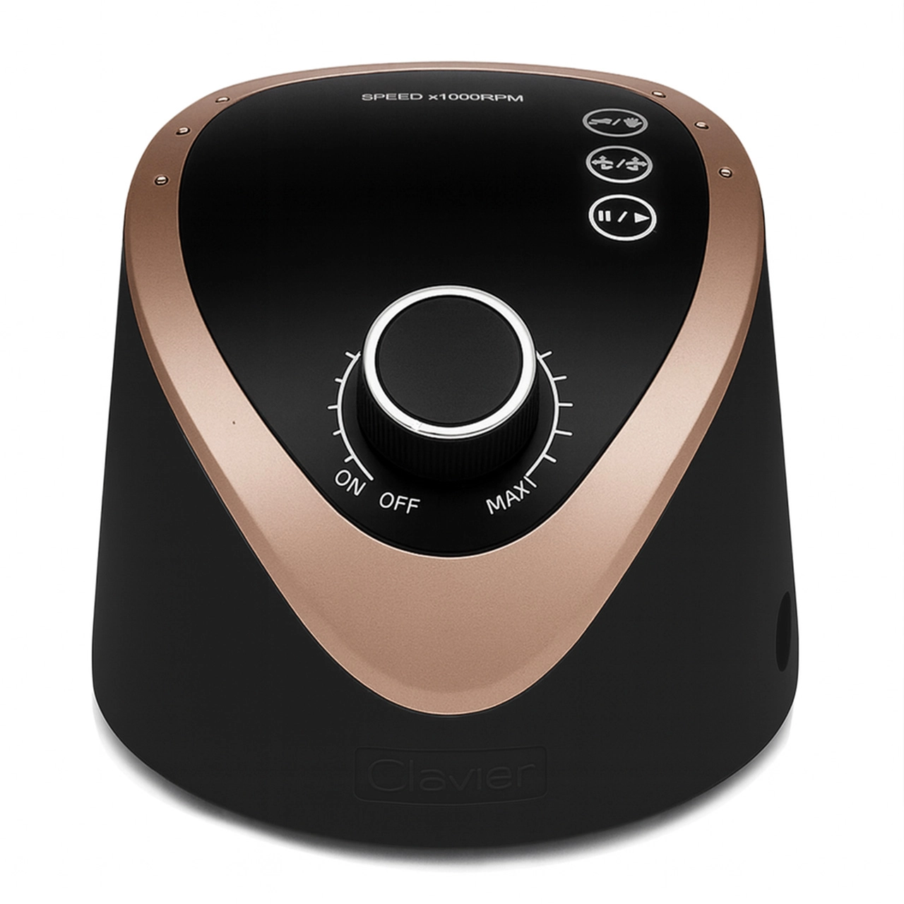 - Moc 65W – idealna do intensywnej pracy w salonie, gwarantuje płynne i efektywne działanie nawet przy trudniejszych zabiegach pedicure.