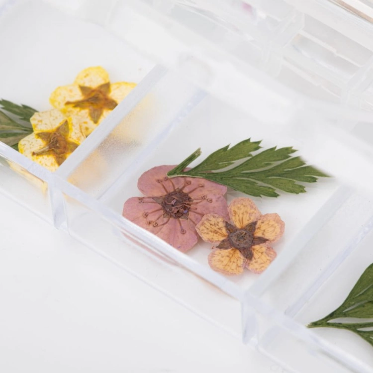 • kasetka zawiera zestaw różnokolorowych, suszonych kwiatów