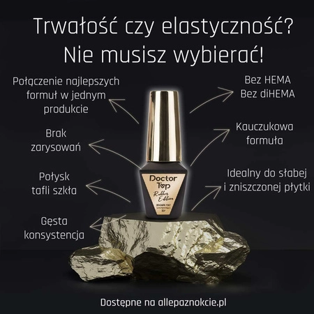 Doctor Top Rubber Edition to idealne połączenie efektu tafli szkła, kauczukowej formuły, pracującej razem z paznokciem oraz samoregenaracja płytkich uszkodzeń i zadrapań.
